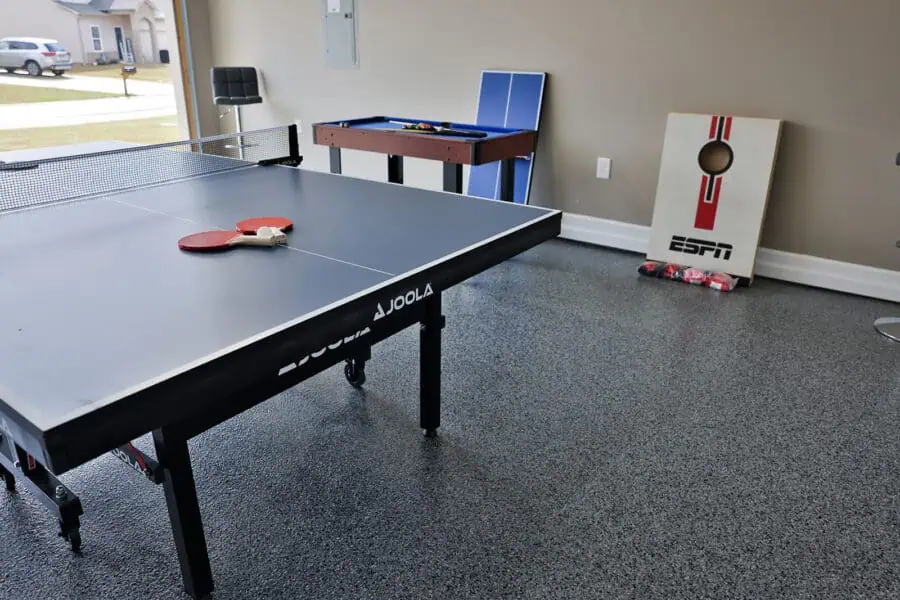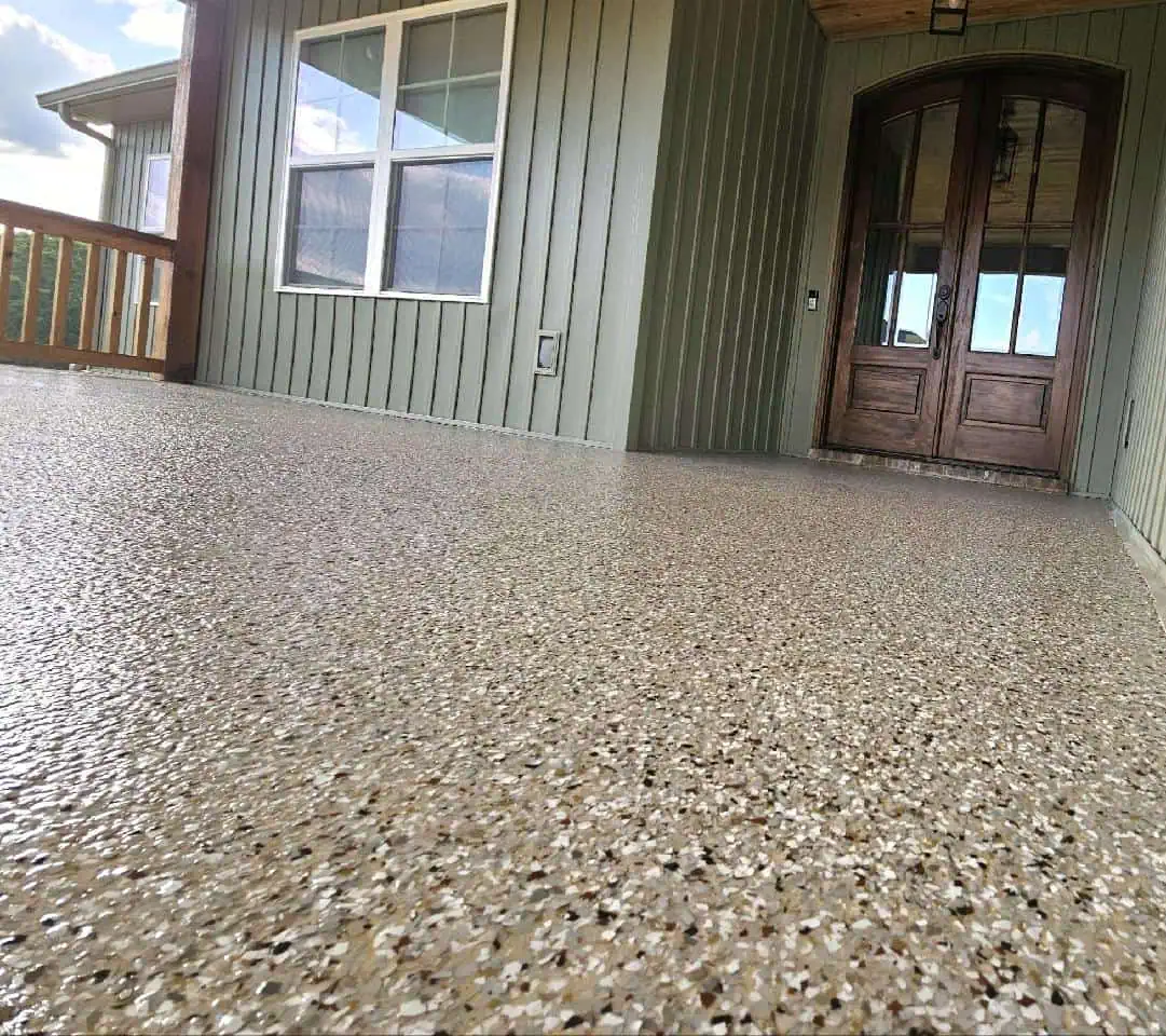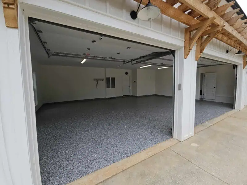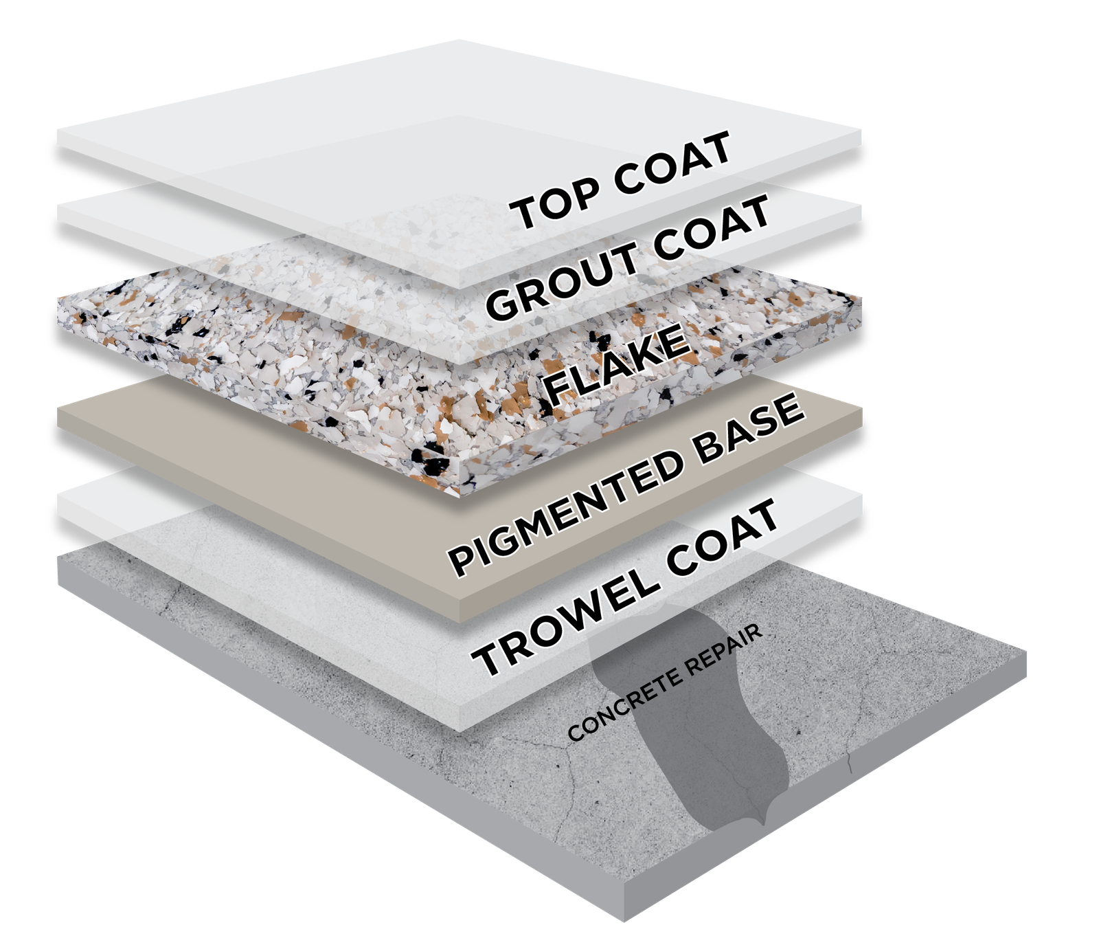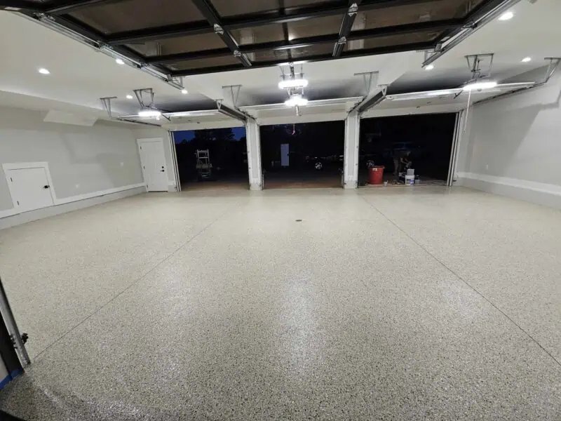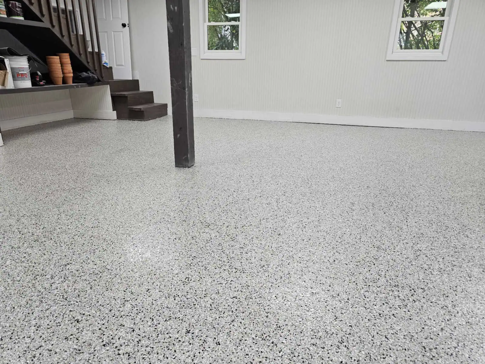 Our professional team applies multiple layers of epoxy and distributes the flake blend evenly for a seamless, decorative finish. Once cured, we seal the floor for added protection, resulting in a scratch-resistant, non-slip, and stunning surface that lasts for years.